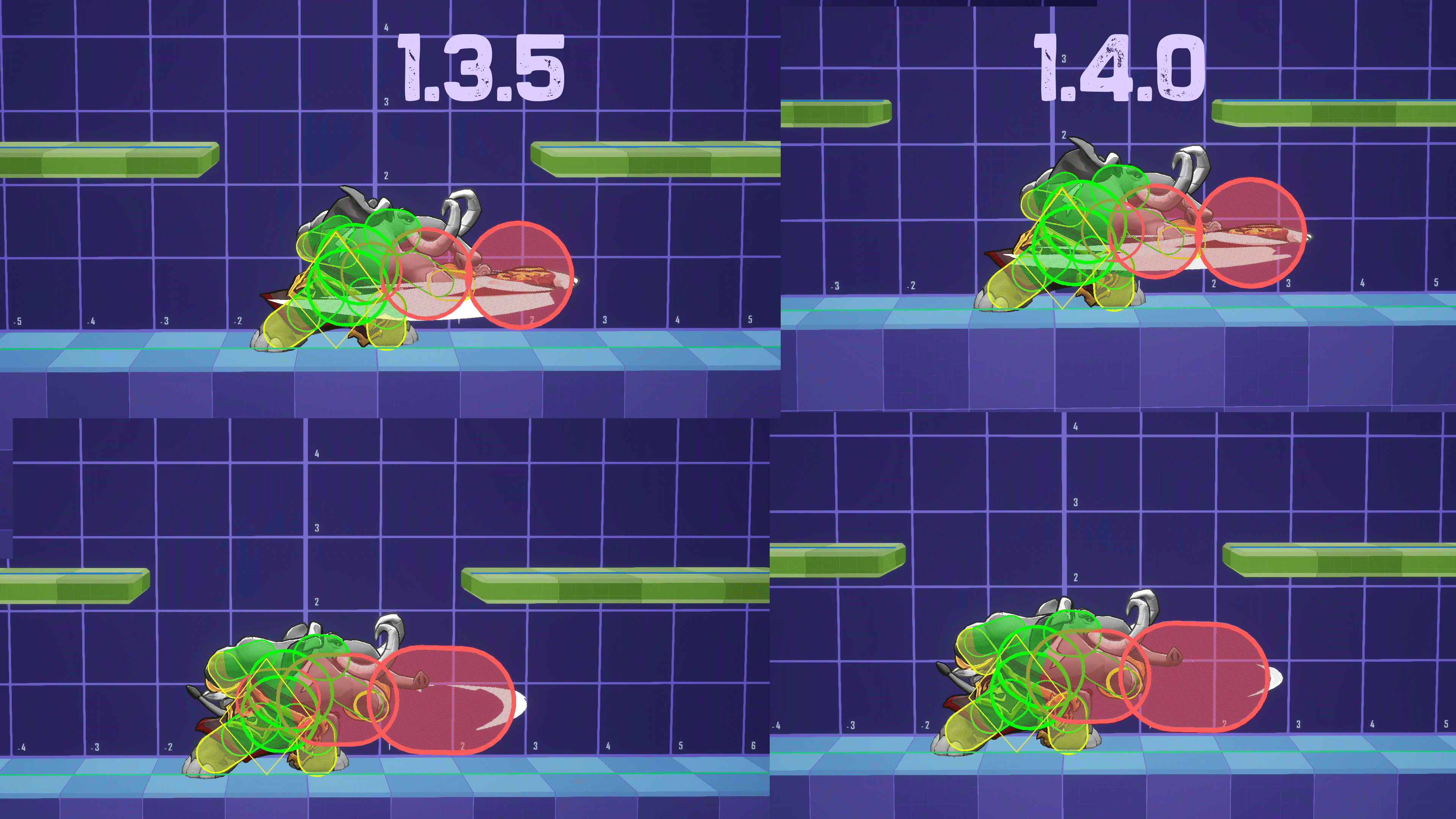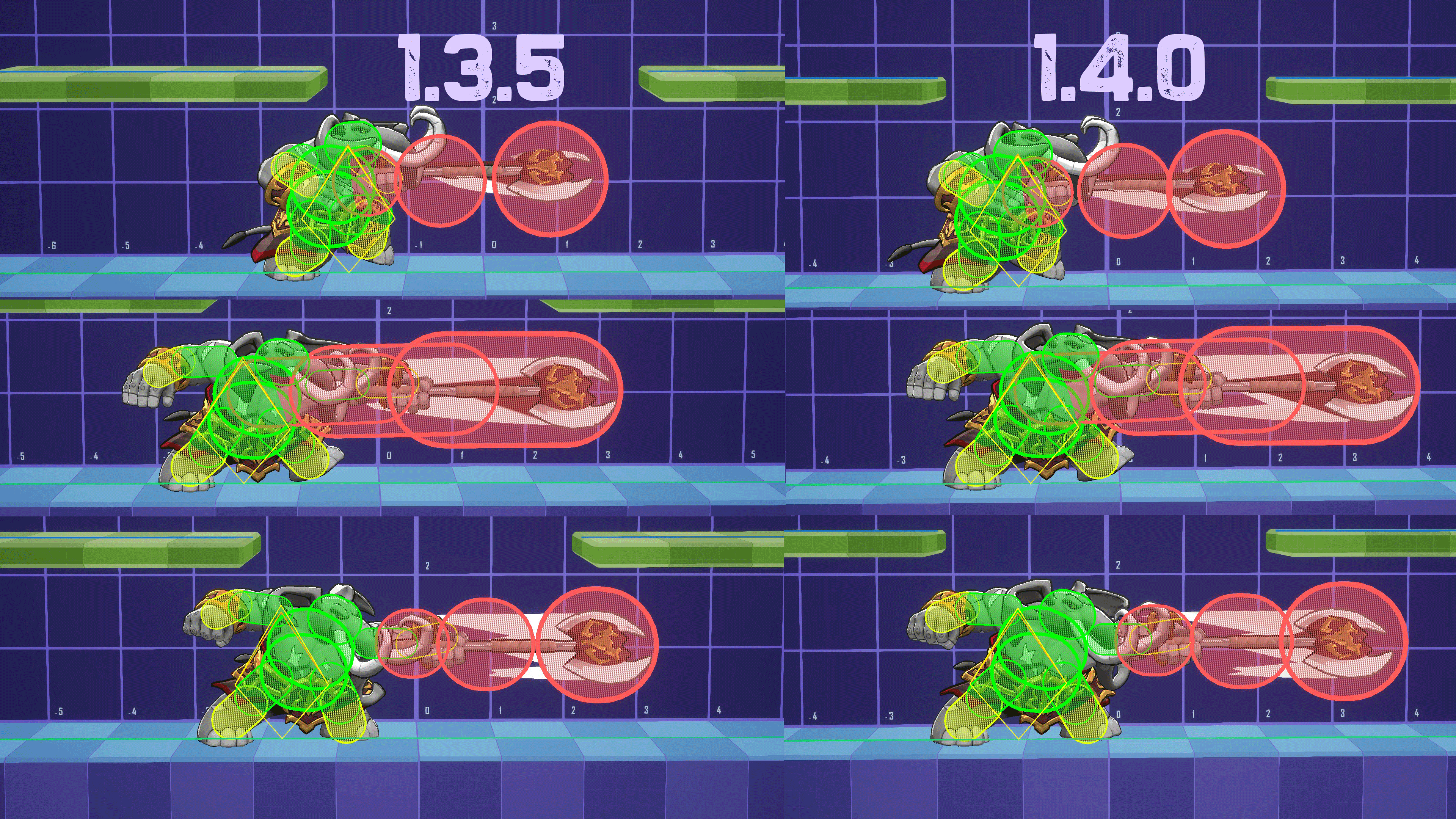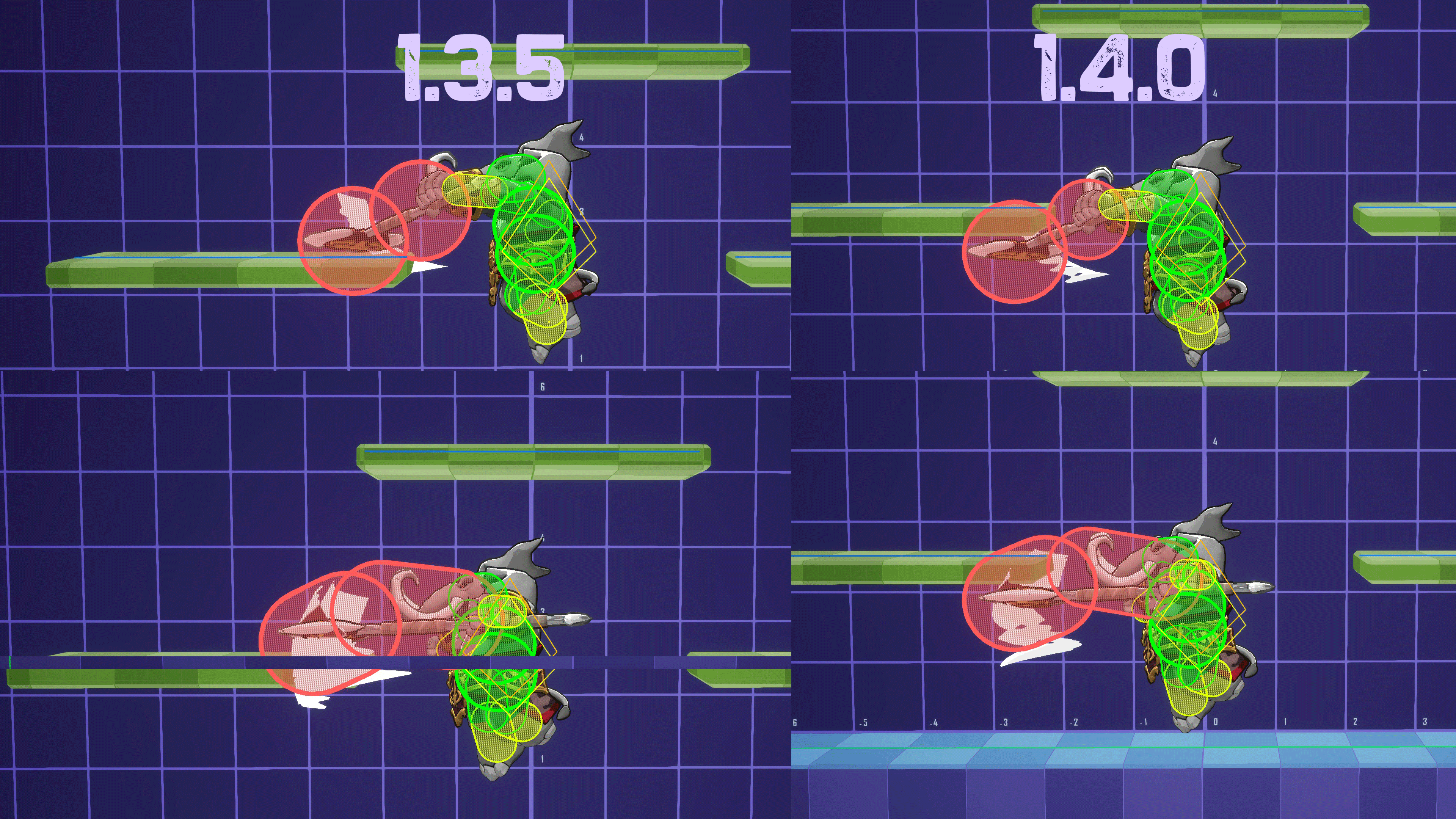 - The hitboxes on this move were a bit too large for our liking, making it cover a bit more space for a longer duration than we felt it should. These changes also reduce the inward range of each swing slightly.