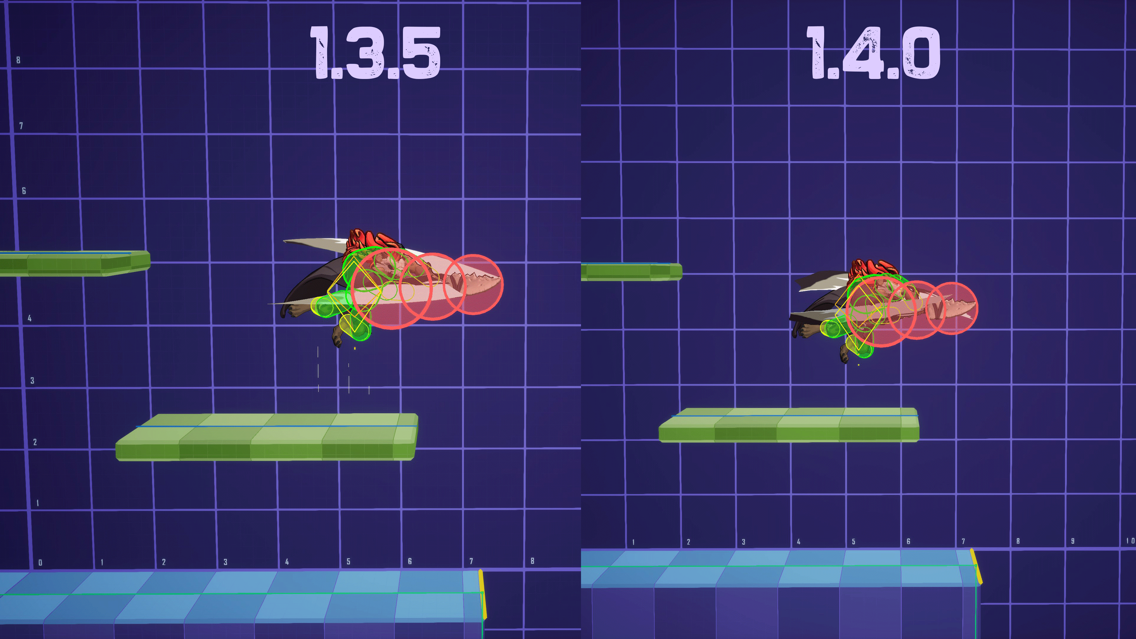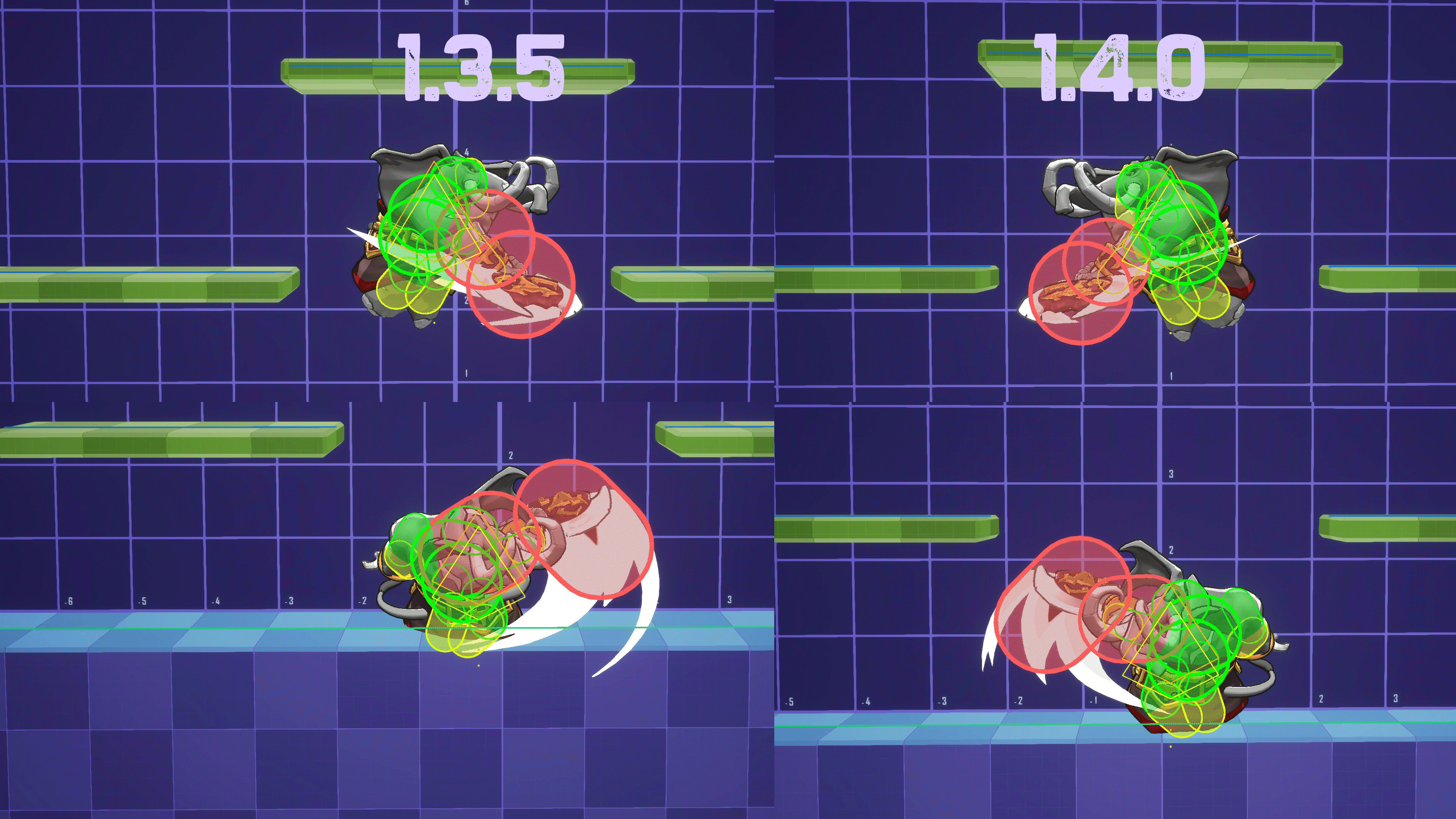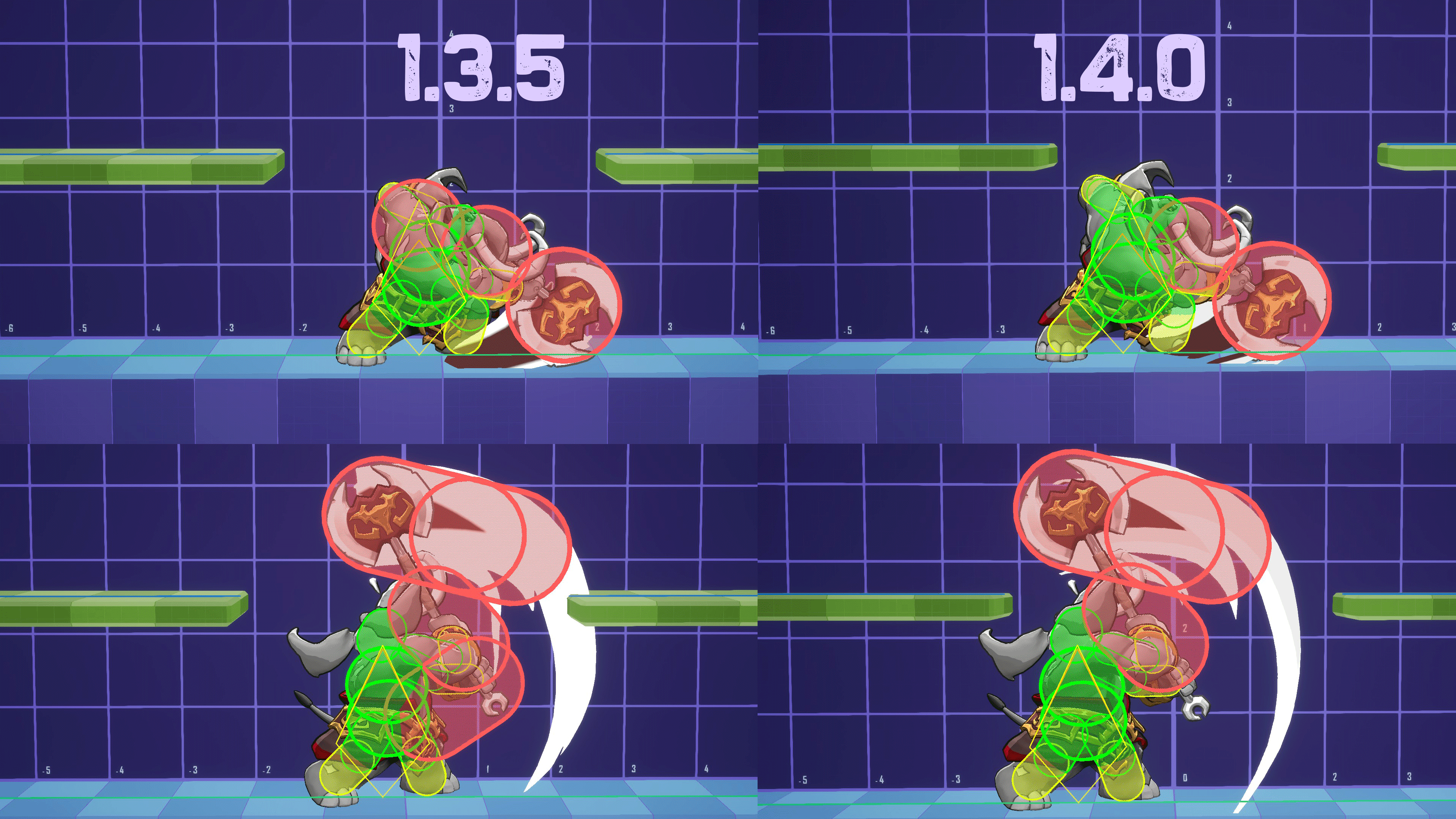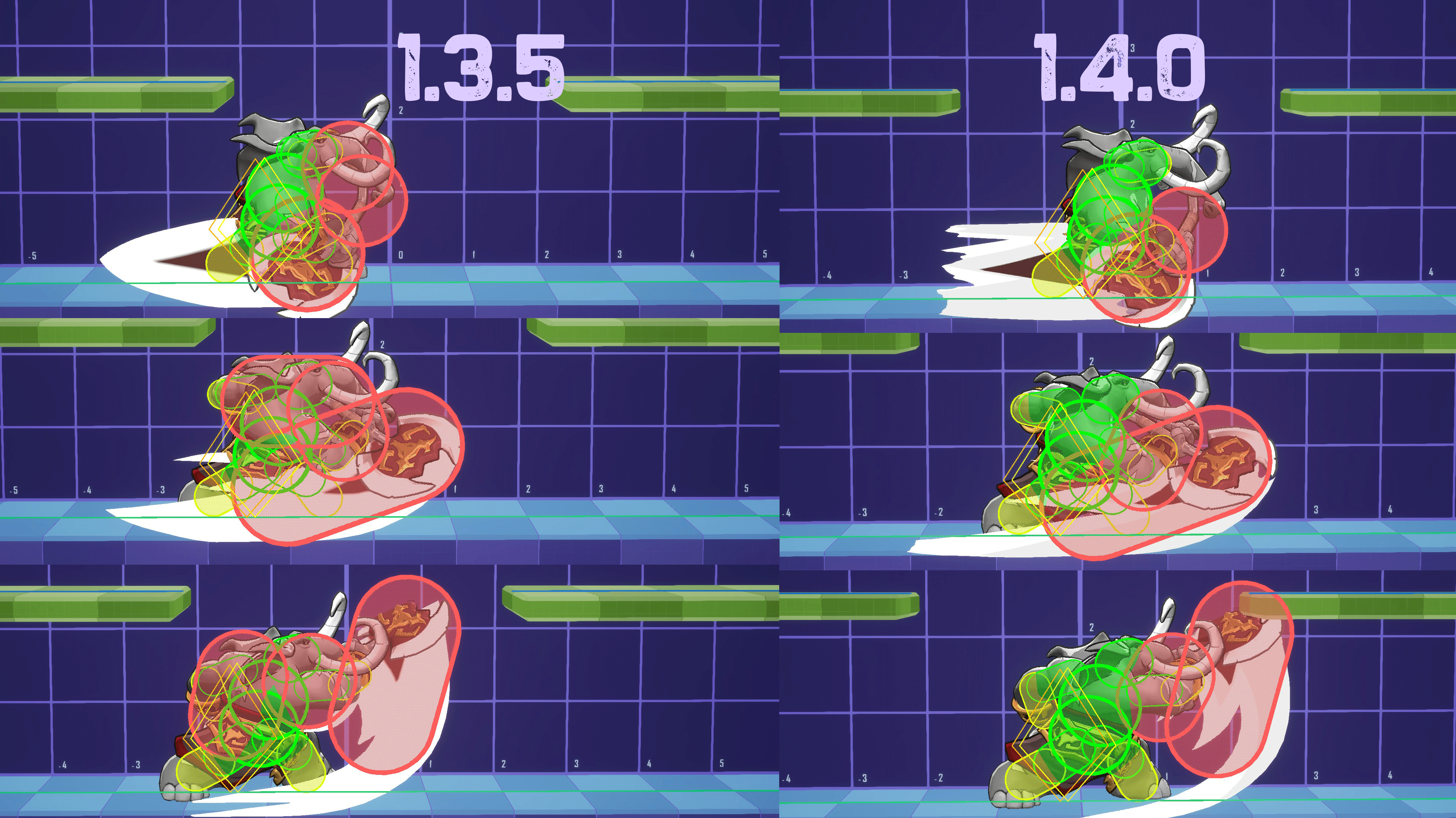 - The hitboxes on this move were a bit too large for our liking, making it cover a bit more space for a longer duration than we felt it should. These changes also reduce the inward range of each swing slightly.